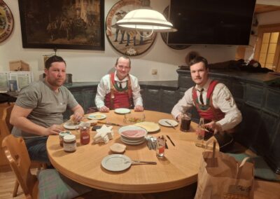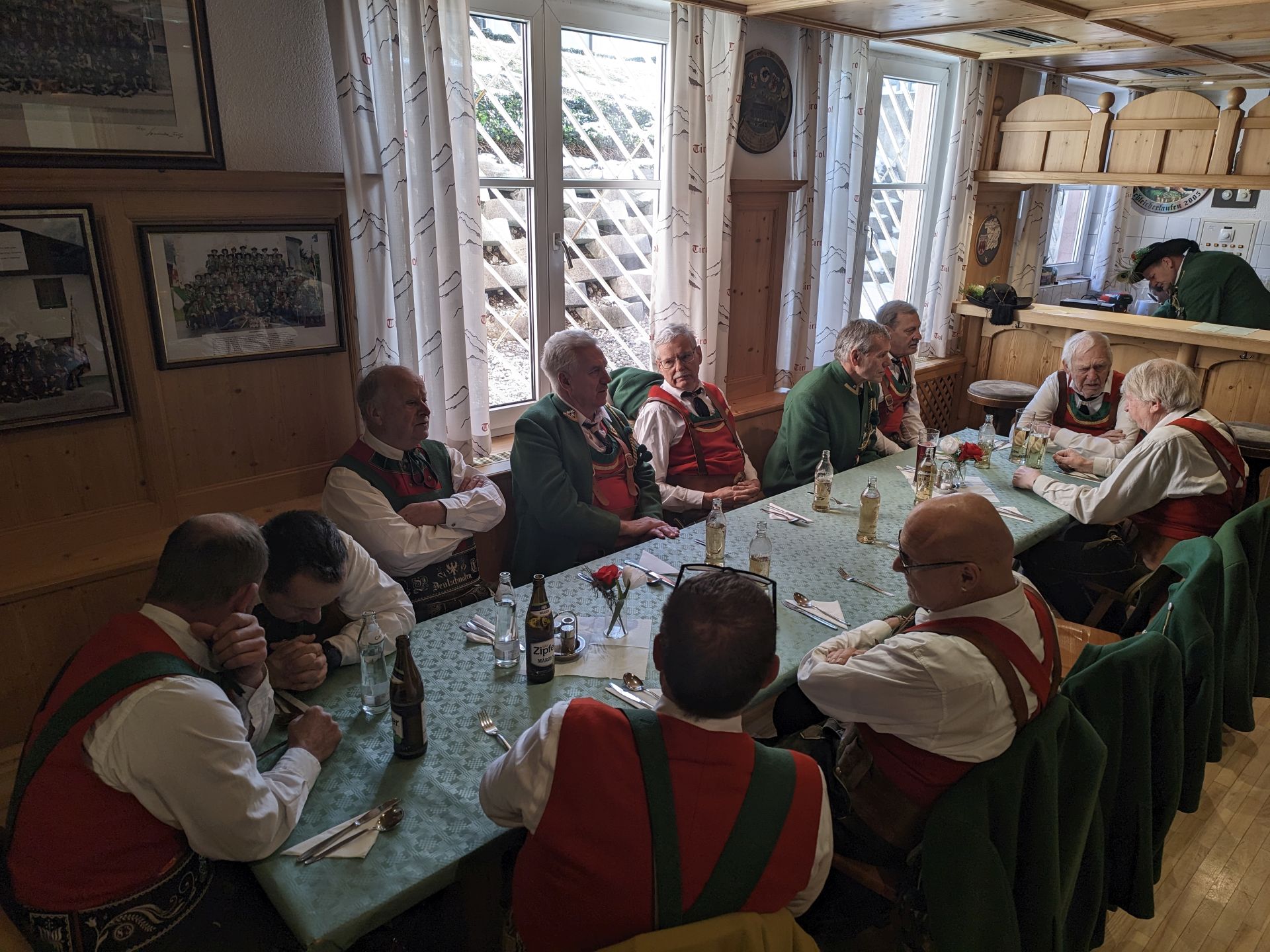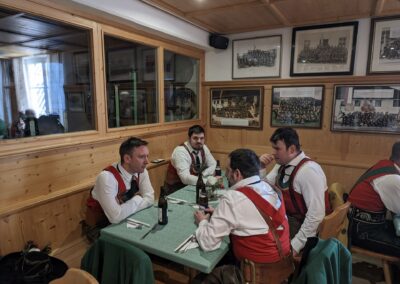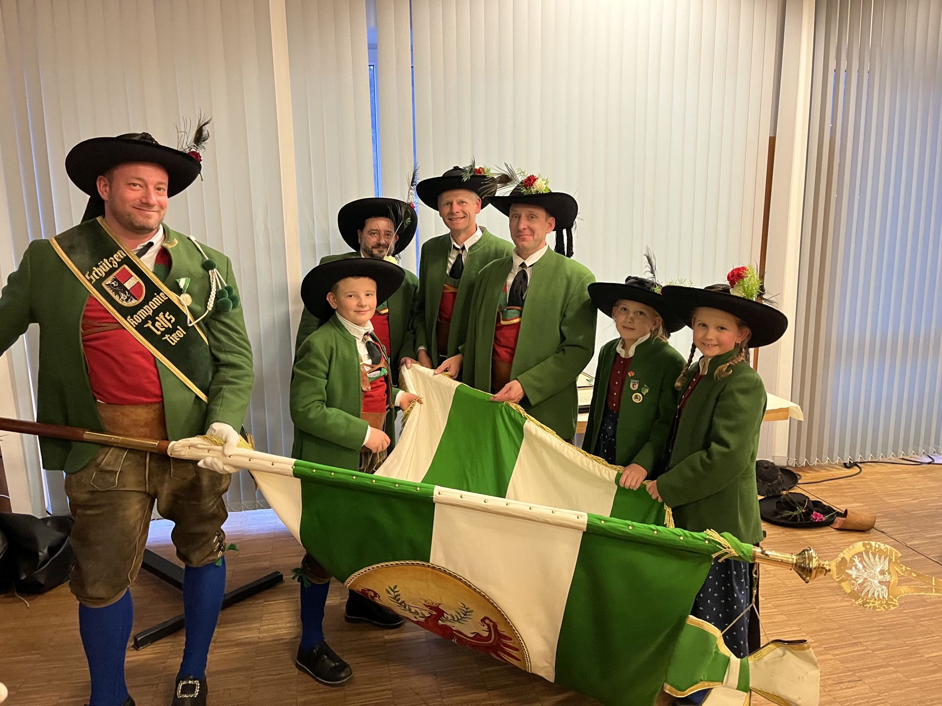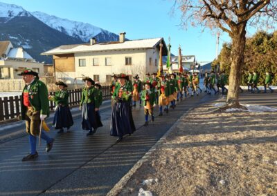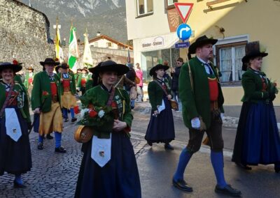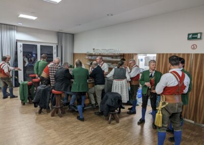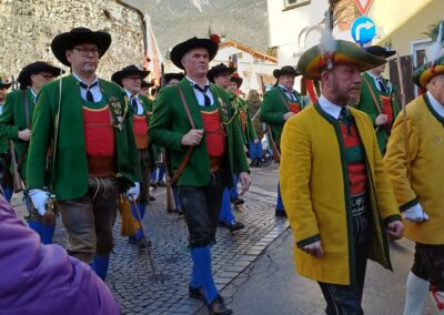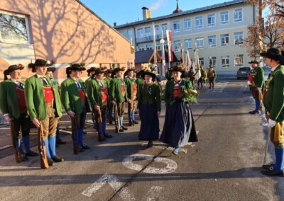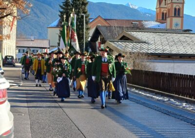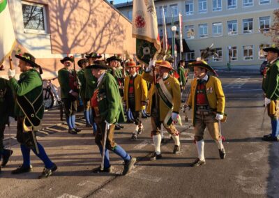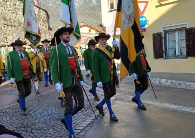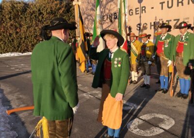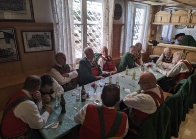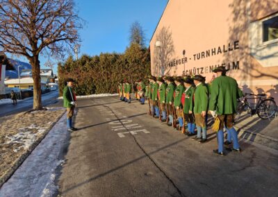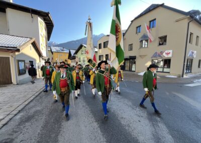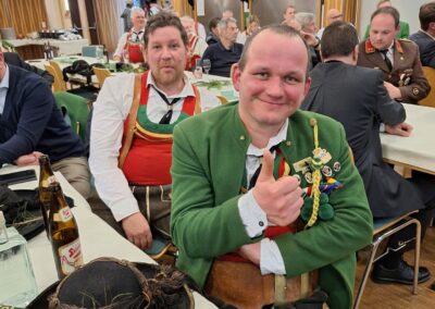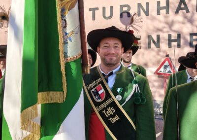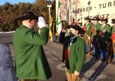 Bereits vor der Messe fand sich die Kompanie im Schützenheim ein. Hauptmann Trostberger durfte eine Abordnung der Partner-Kompanie aus Deutschnofen rund um Hauptmann Walter Pichler sowie Bataillons-Schriftführer Oberleutnant Thomas Wild von der Kompanie Zirl als Ehrengäste begrüßen.