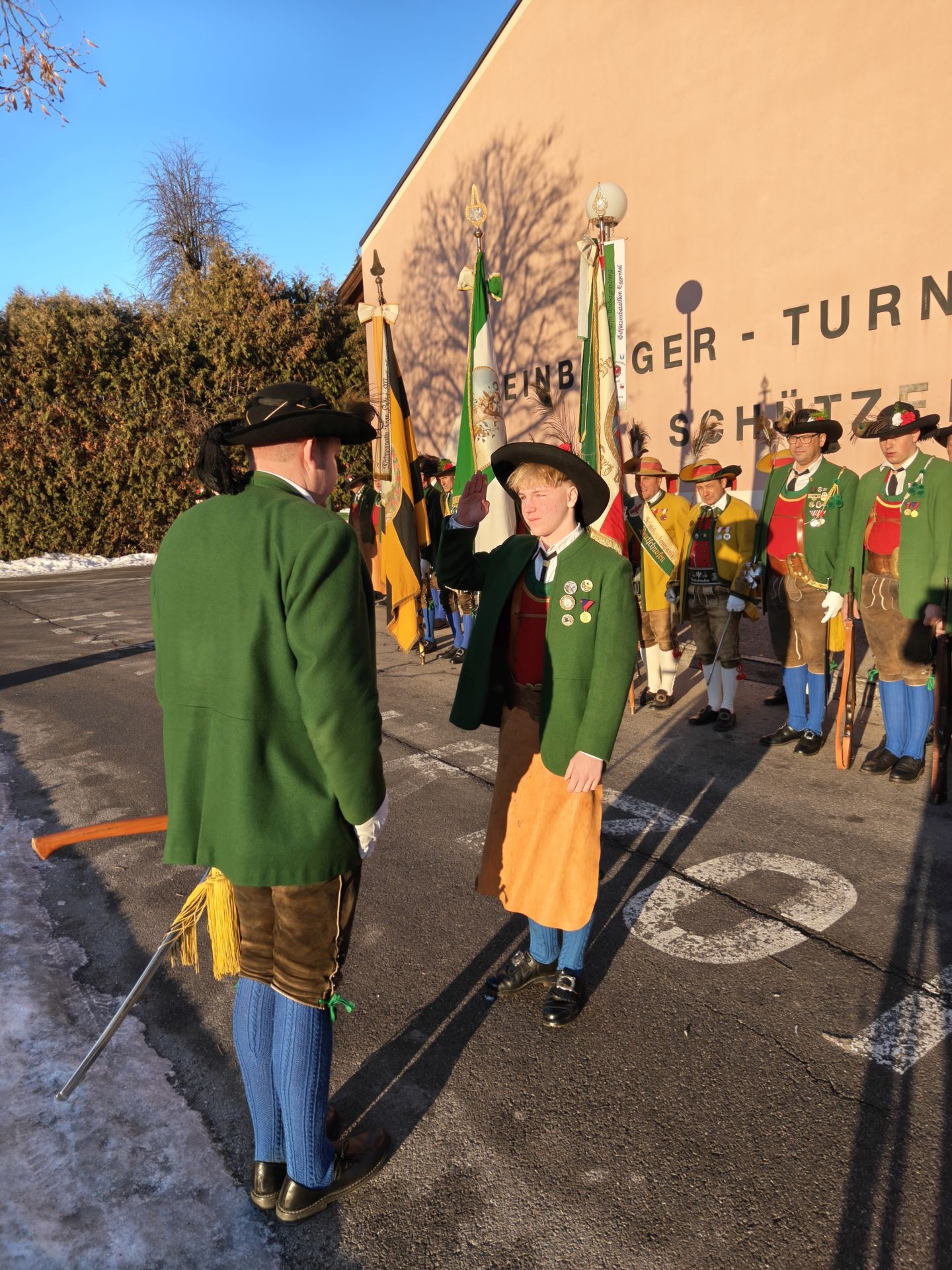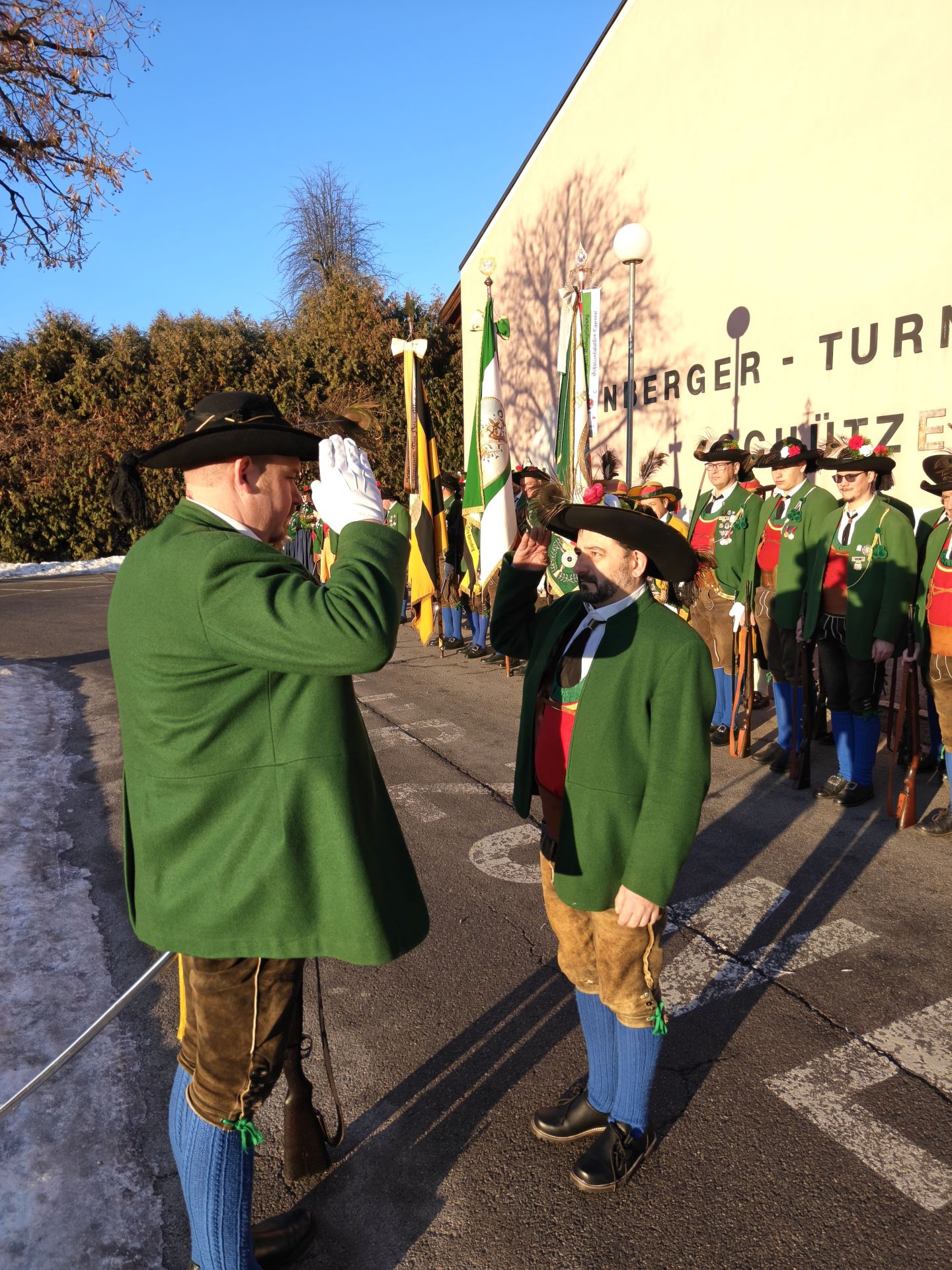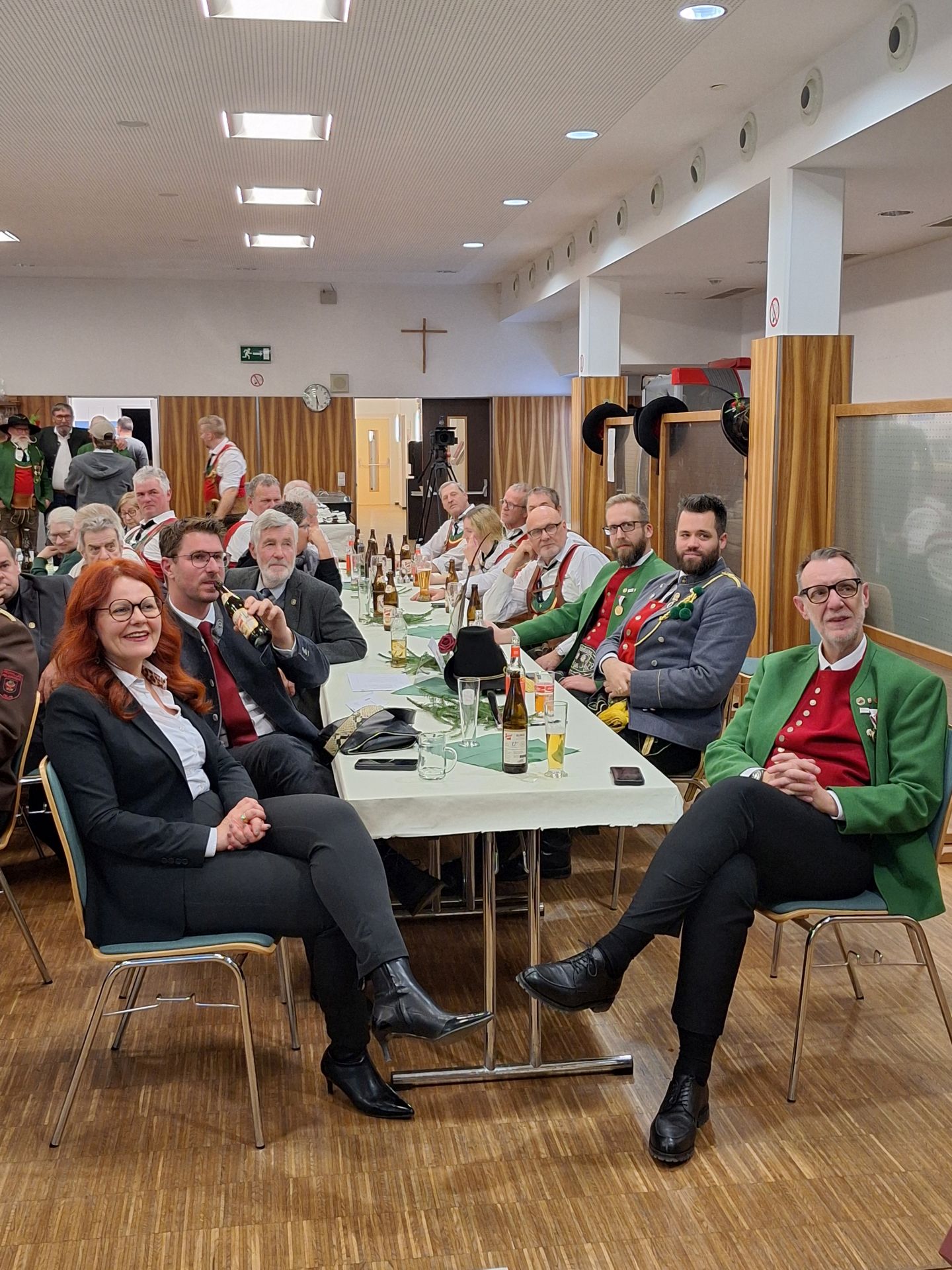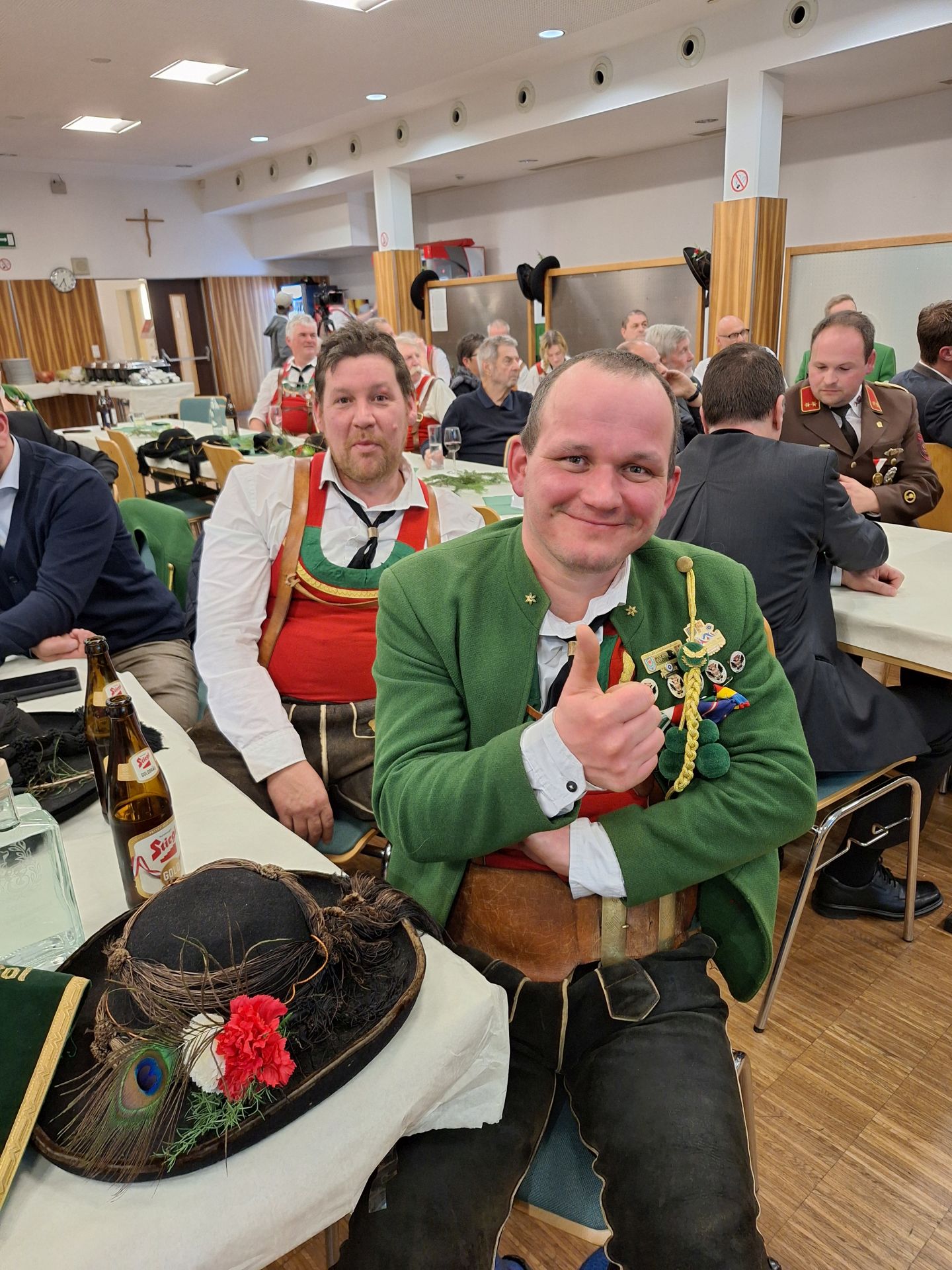 Bereits vor der Messe fand sich die Kompanie im Schützenheim ein. Hauptmann Trostberger durfte eine Abordnung der Partner-Kompanie aus Deutschnofen rund um Hauptmann Walter Pichler sowie Bataillons-Schriftführer Oberleutnant Thomas Wild von der Kompanie Zirl als Ehrengäste begrüßen.