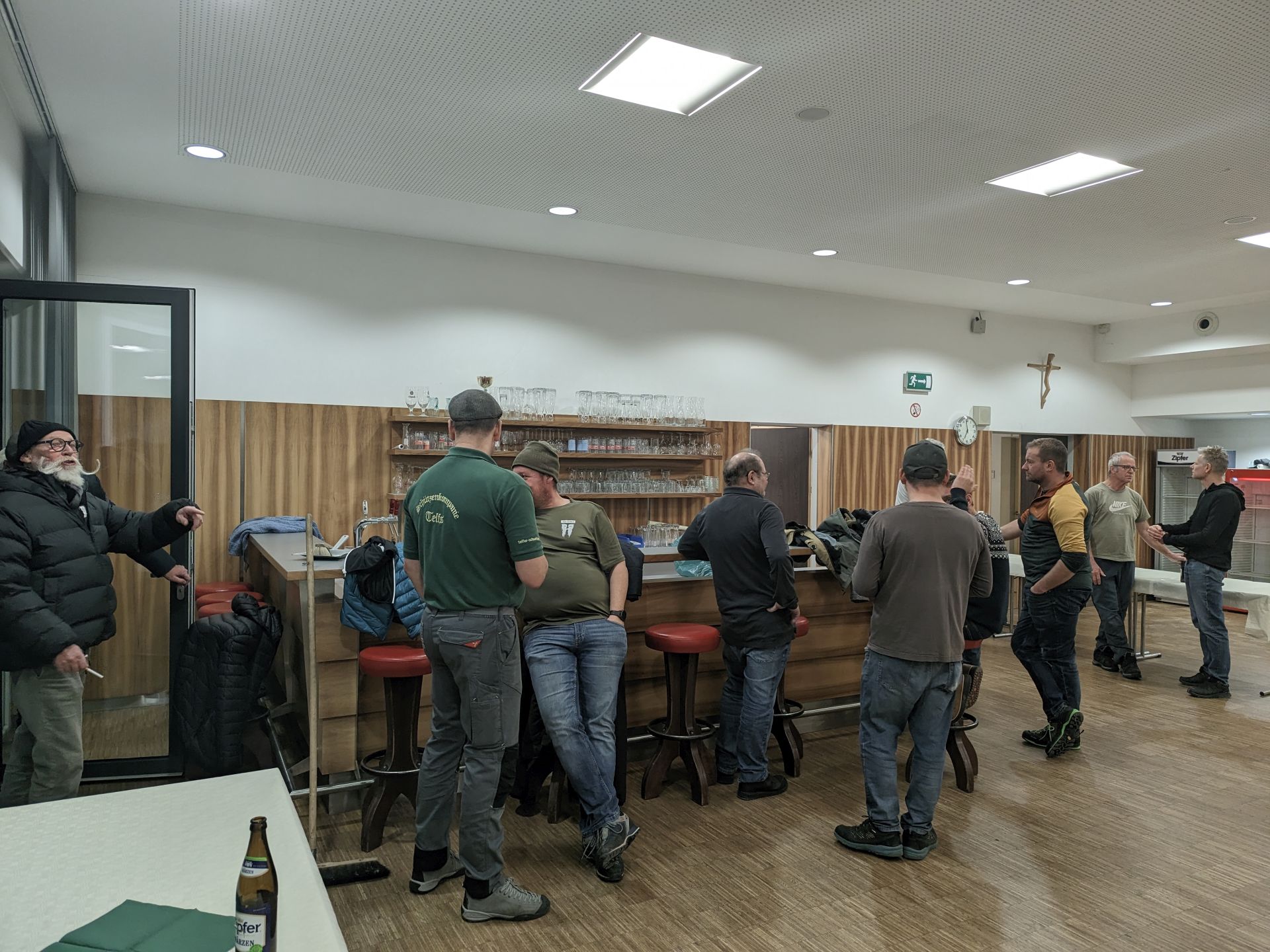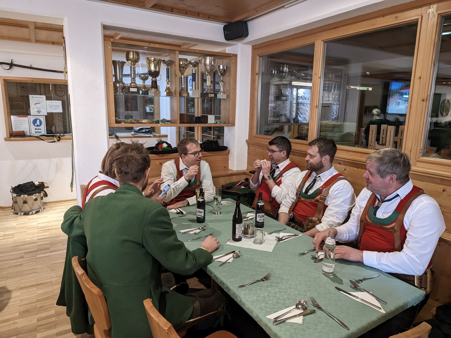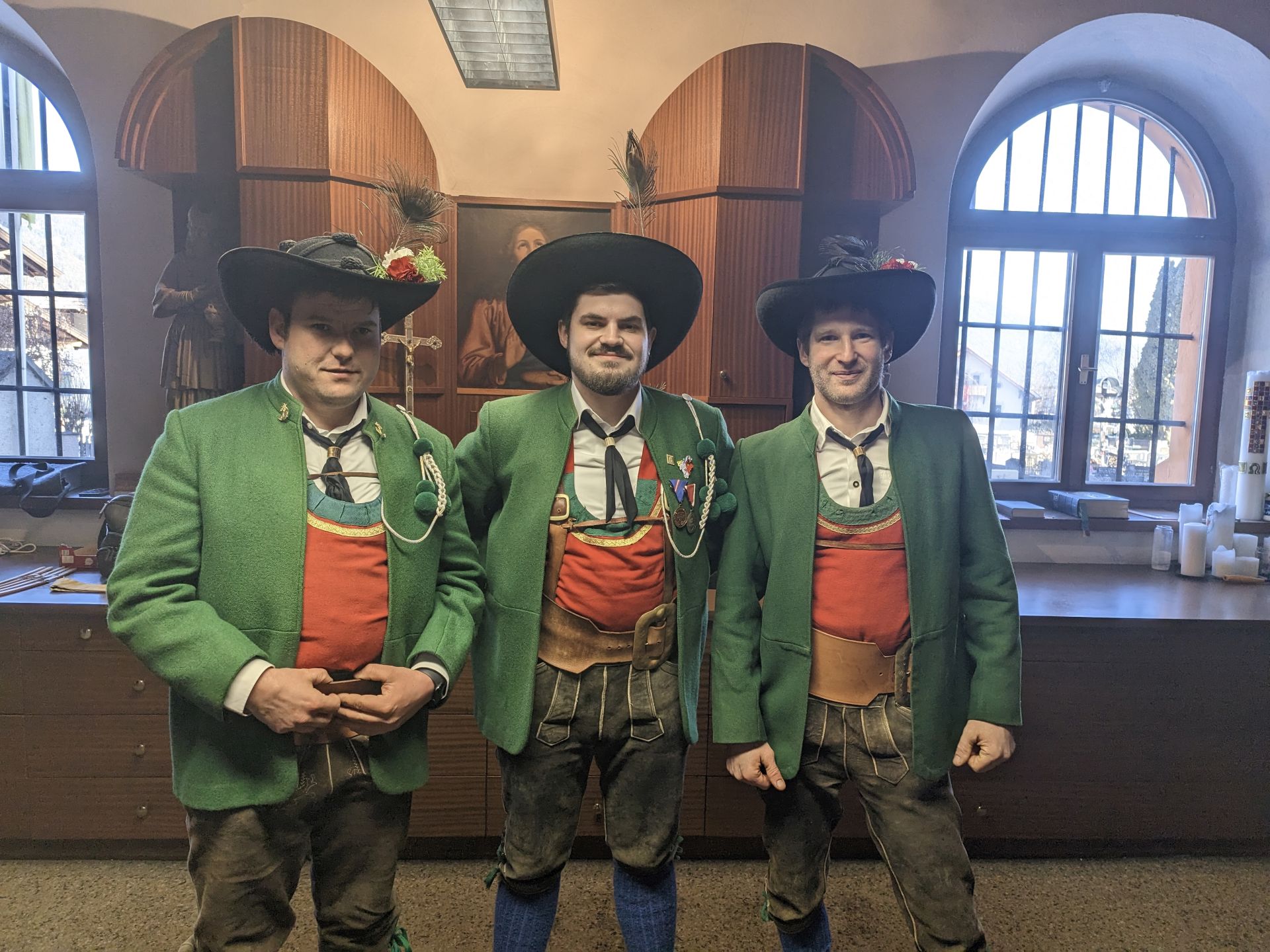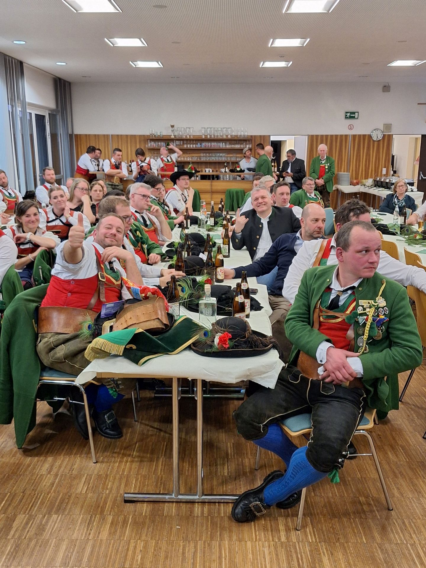 Bereits vor der Messe fand sich die Kompanie im Schützenheim ein. Hauptmann Trostberger durfte eine Abordnung der Partner-Kompanie aus Deutschnofen rund um Hauptmann Walter Pichler sowie Bataillons-Schriftführer Oberleutnant Thomas Wild von der Kompanie Zirl als Ehrengäste begrüßen.