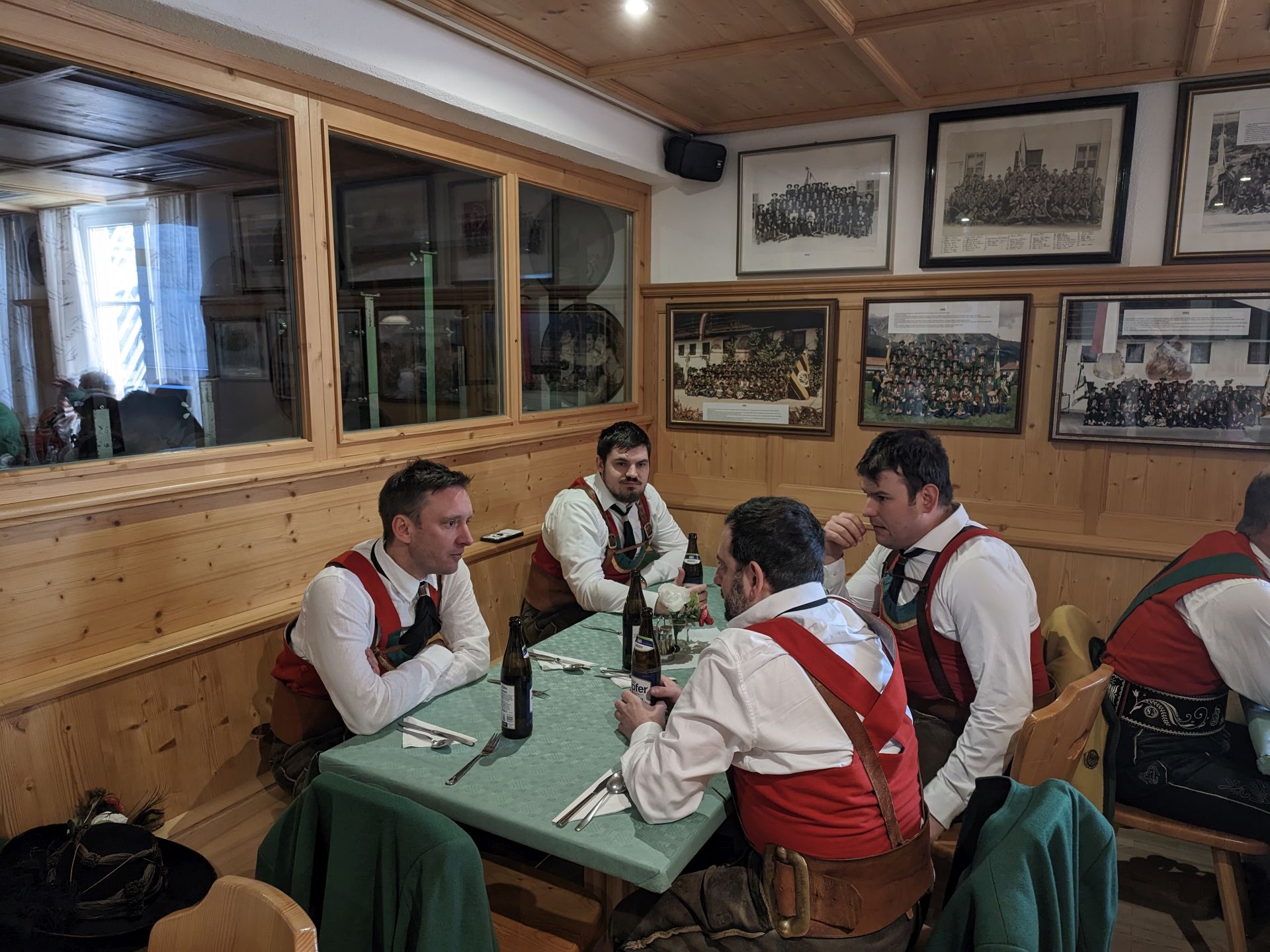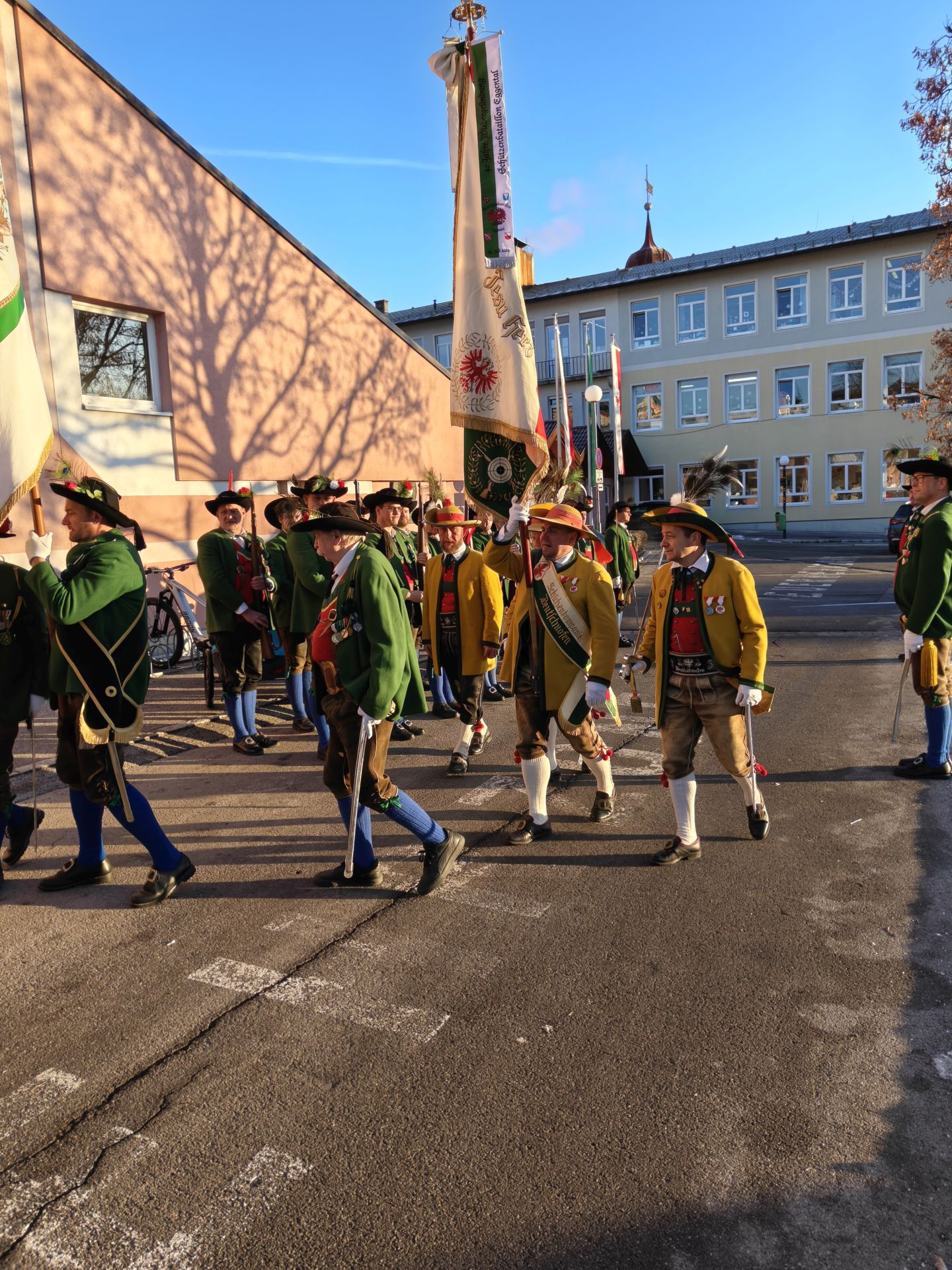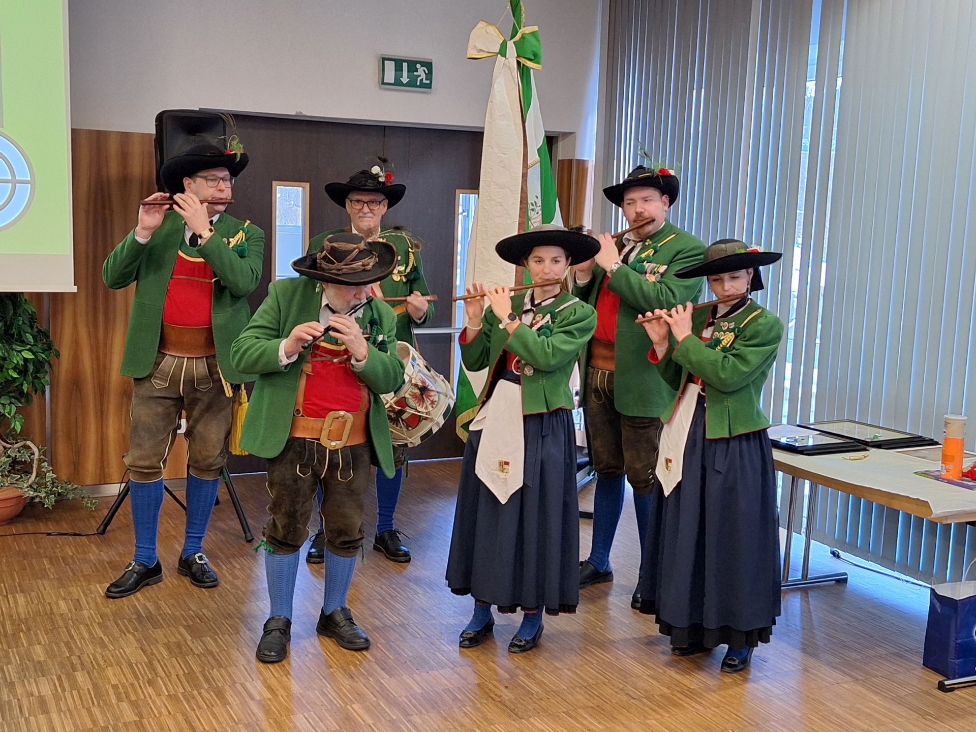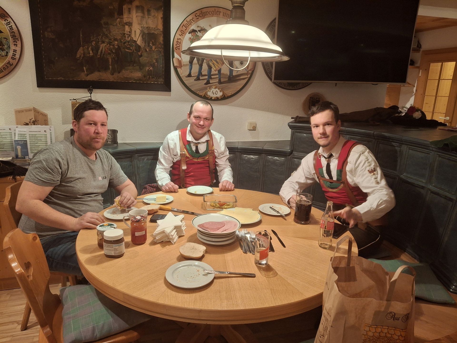 Bereits vor der Messe fand sich die Kompanie im Schützenheim ein. Hauptmann Trostberger durfte eine Abordnung der Partner-Kompanie aus Deutschnofen rund um Hauptmann Walter Pichler sowie Bataillons-Schriftführer Oberleutnant Thomas Wild von der Kompanie Zirl als Ehrengäste begrüßen.