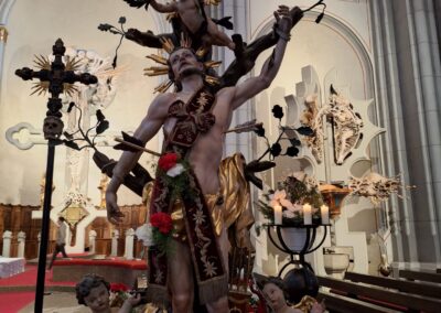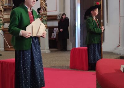 Nachdem Fabian Spiegl (Hacke) sowie Patrick Uitz und Roland Frieß (Gewehr) ihre Werkzeuge entgegengenommen haben, marschierte die Kompanie zur Pfarrkirche, wo der Festgottesdienst vom Abt des Stiftes Stams – Cyrill Greiter – gemeinsam mit Diakon Danijel Juric und weiteren Geistlichen rund um Dekan Peter Scheiring zelebriert wurde.