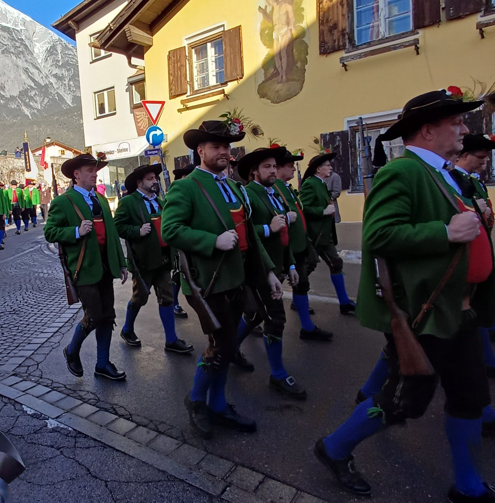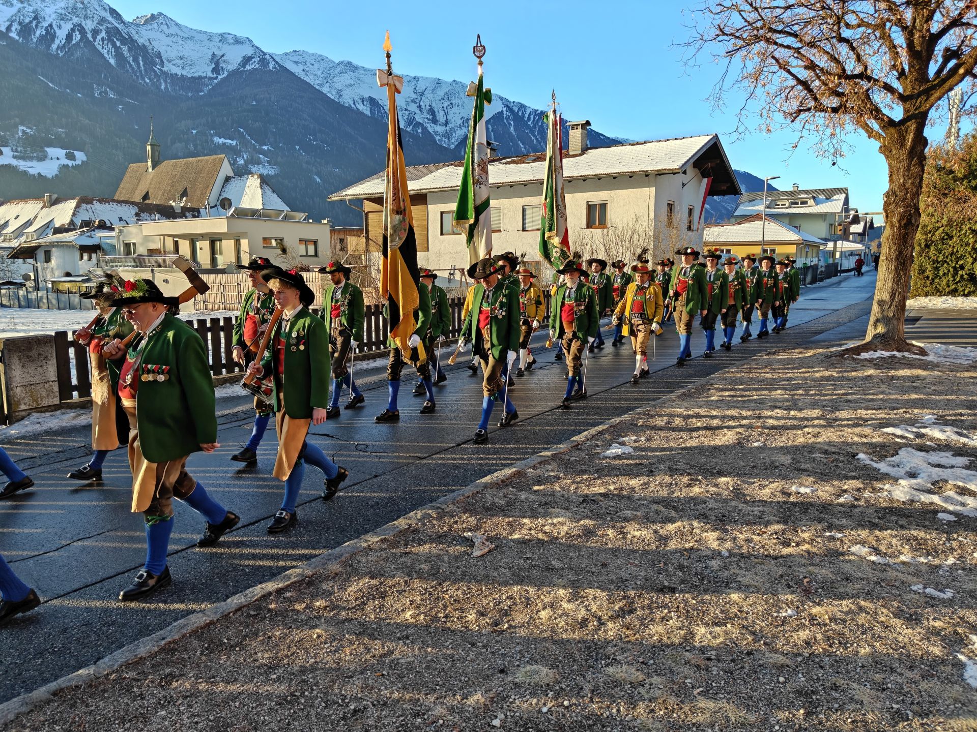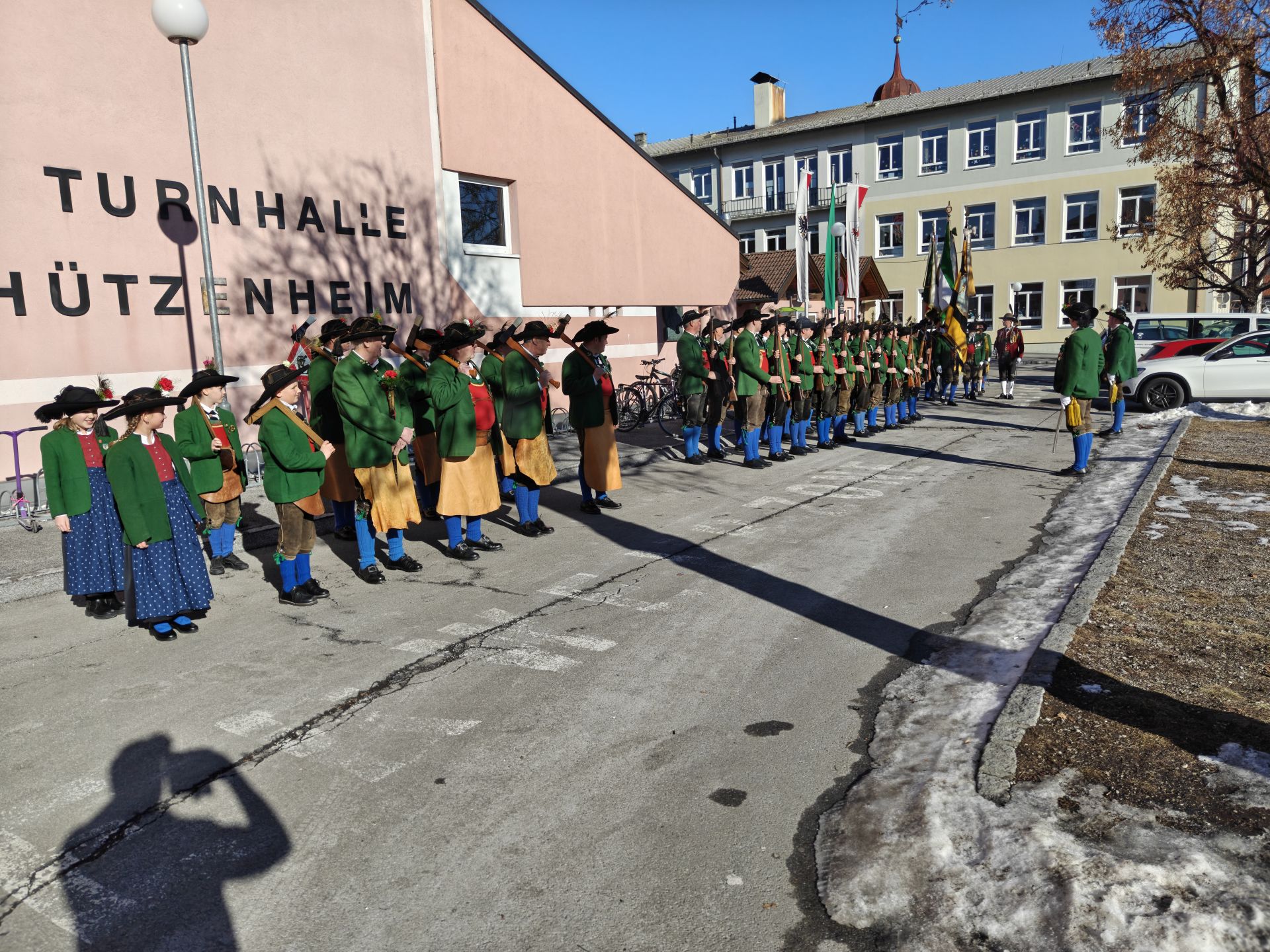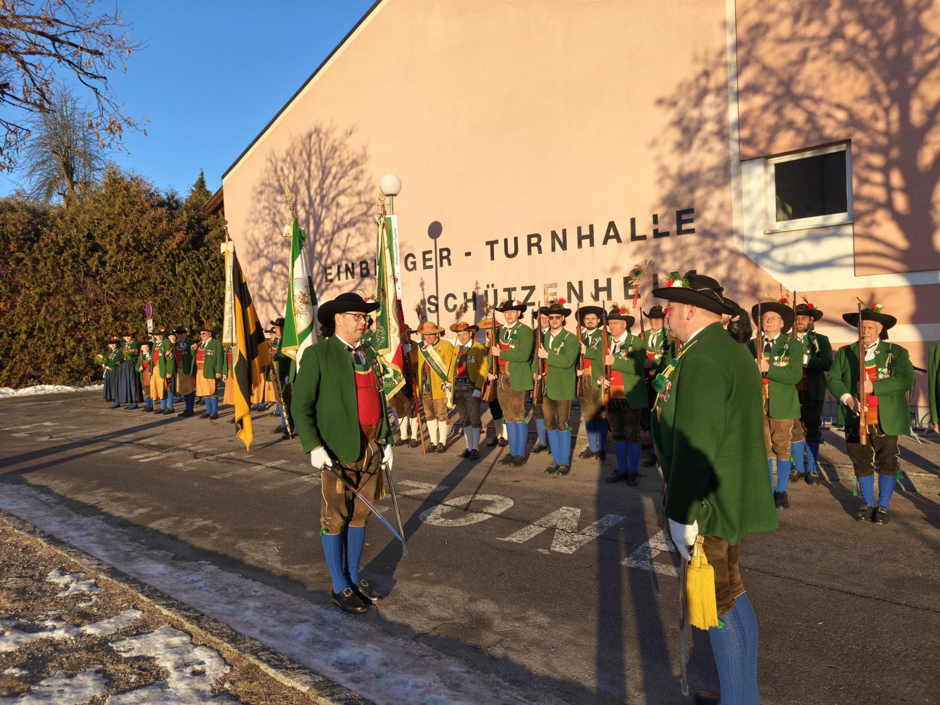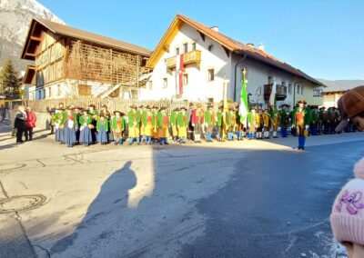 Nach dem Sebastiani-Lied und dem Telfer Segen in der Pfarrkirche erfolgte der gemeindeübliche Empfang vor dem Widum. Nach einer tadellosen Ehrensalve und der Frontabschreitung marschierte die Kompanie zum Schützenheim, wo noch die Gewehrüberprüfung stattfand.