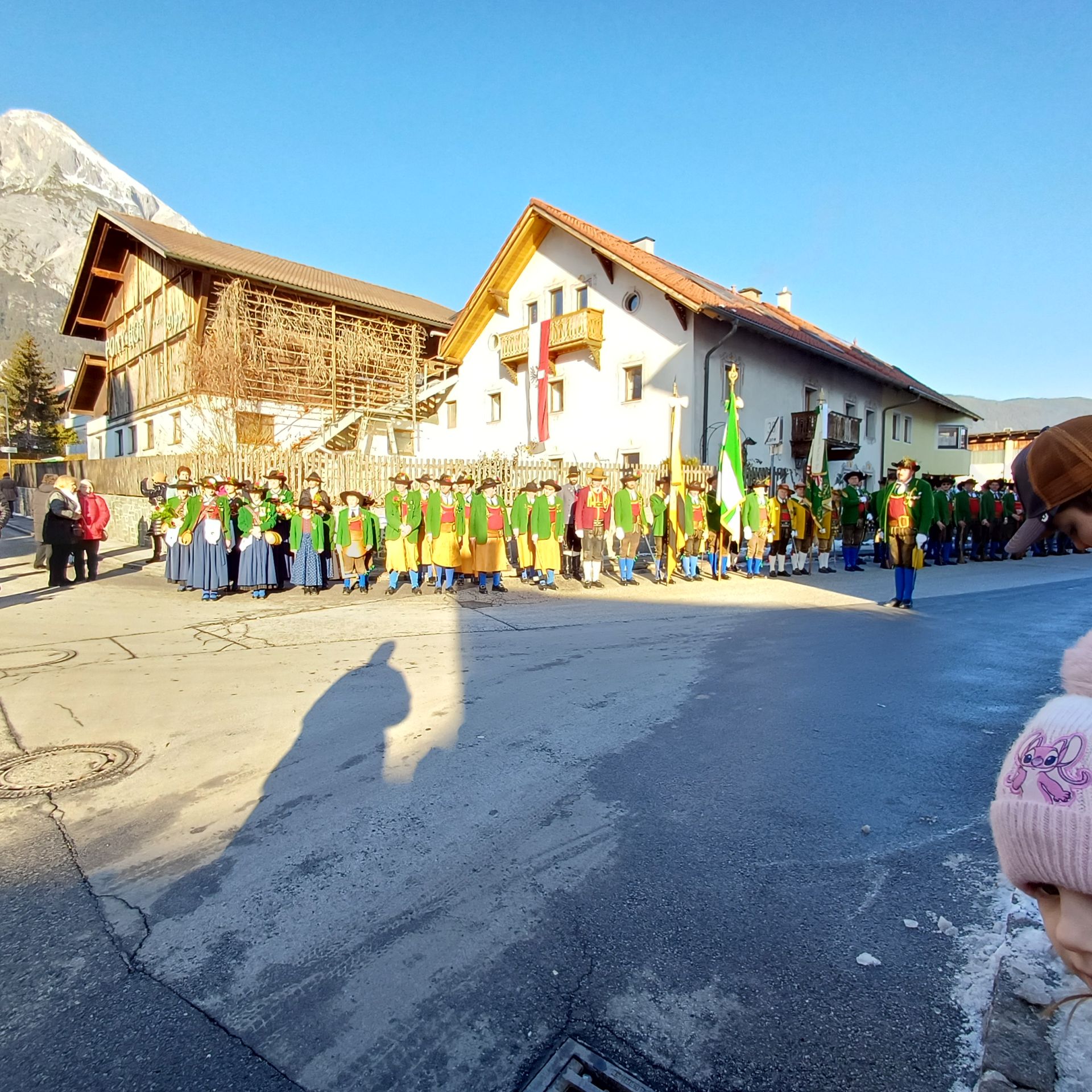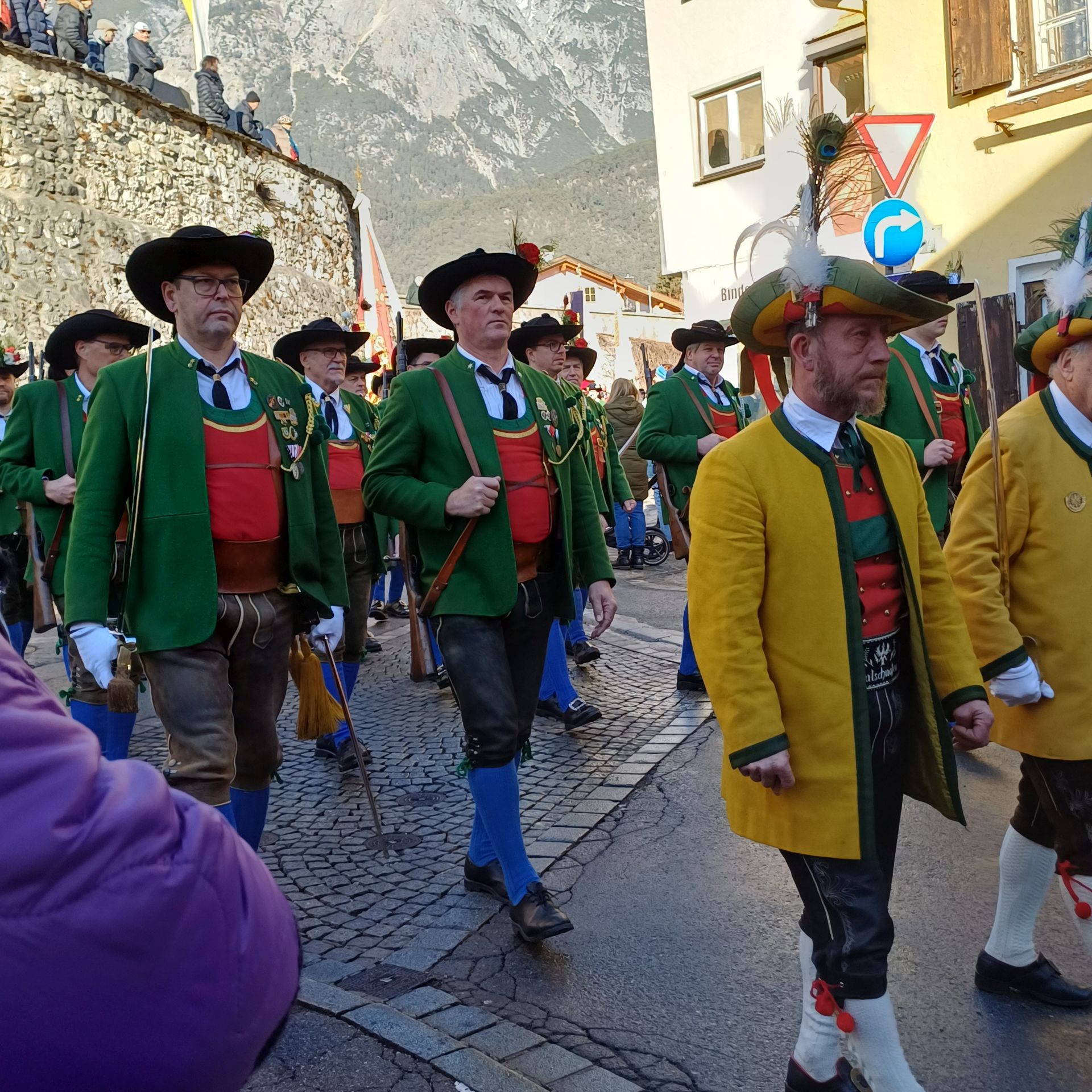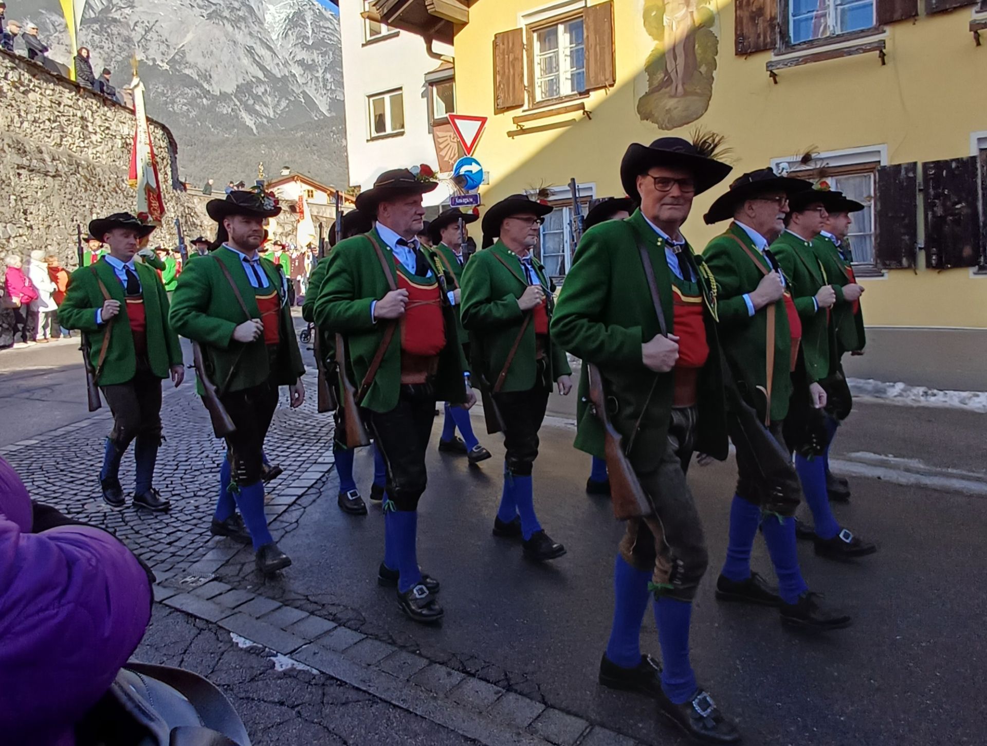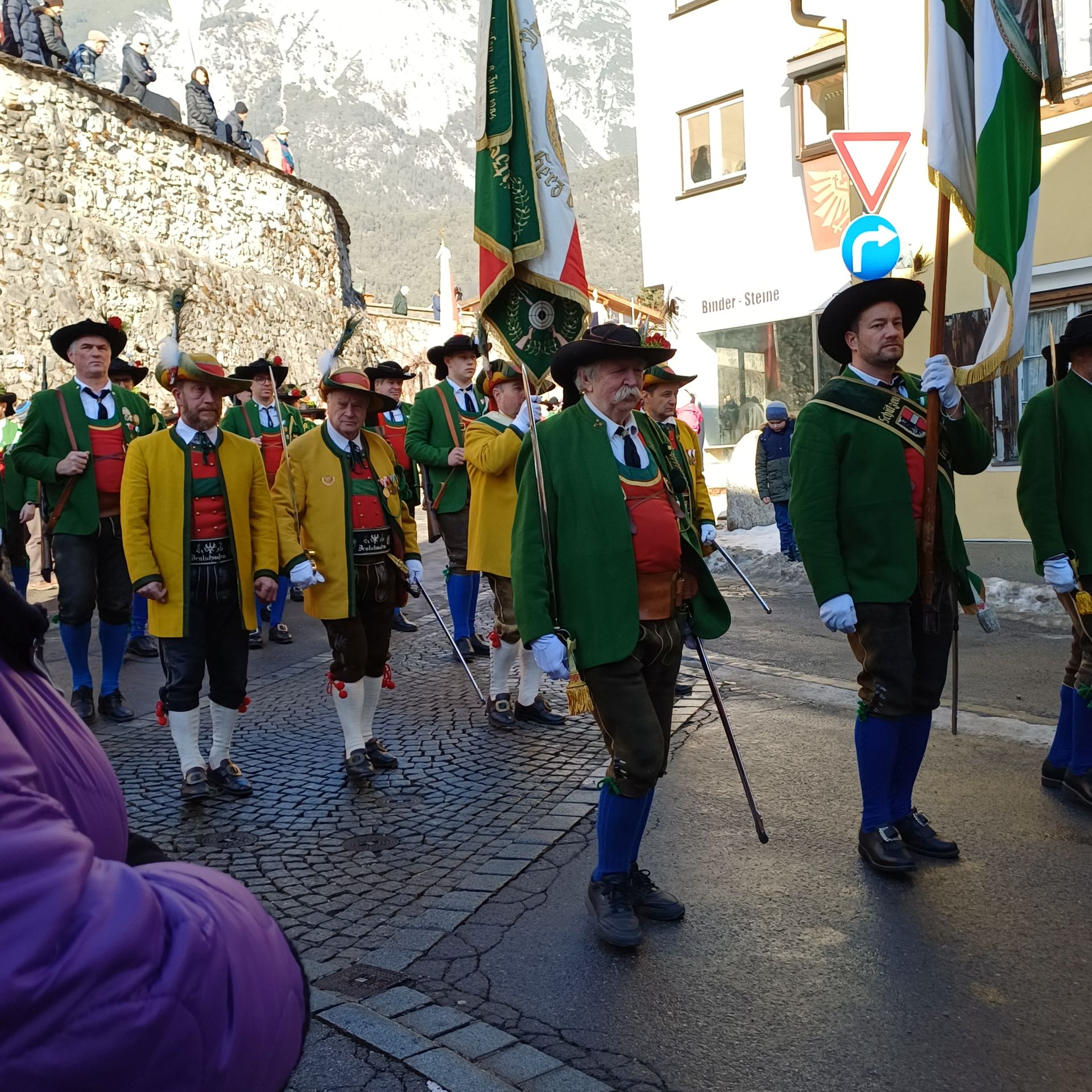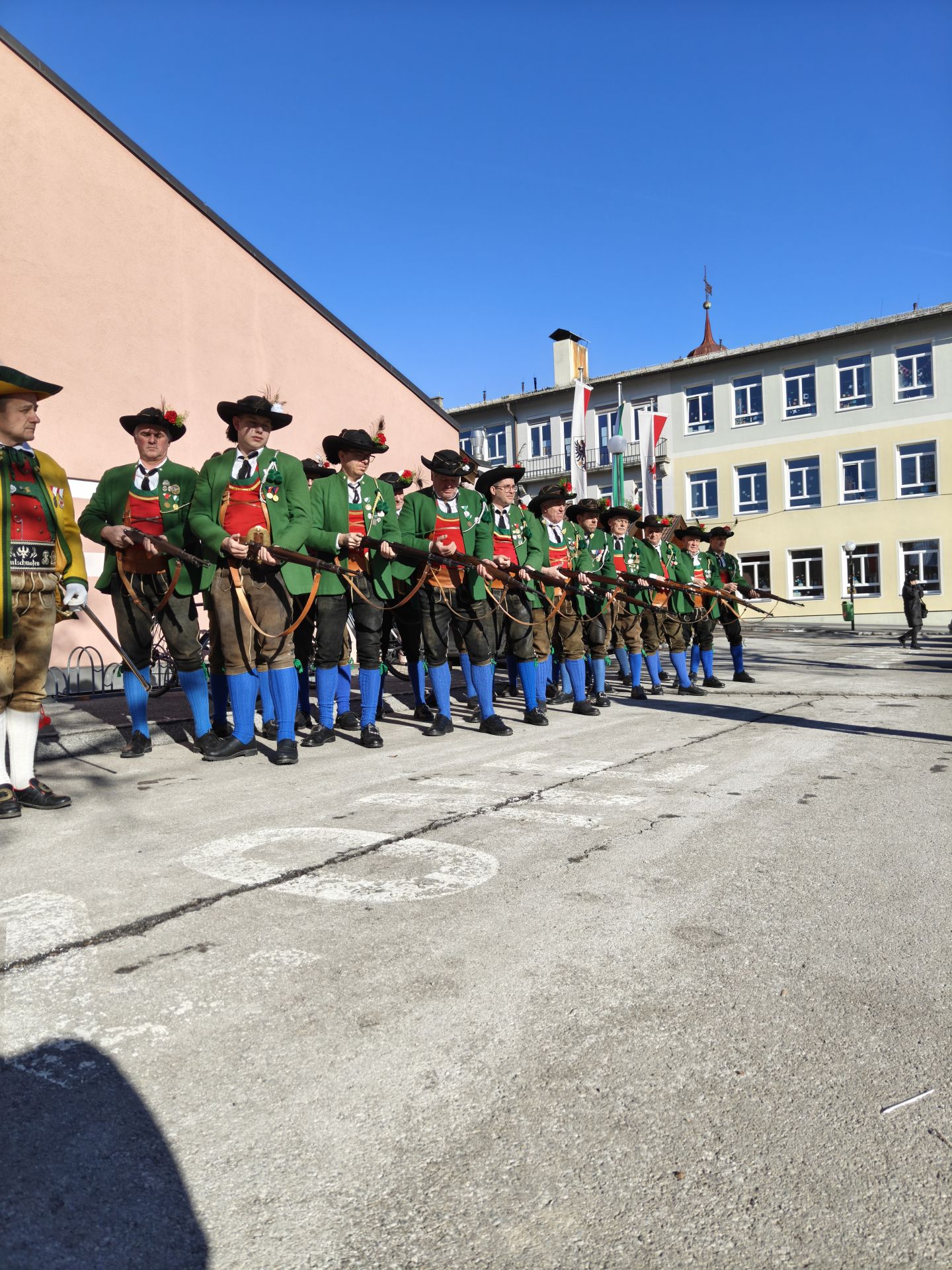 Nach dem Sebastiani-Lied und dem Telfer Segen in der Pfarrkirche erfolgte der gemeindeübliche Empfang vor dem Widum. Nach einer tadellosen Ehrensalve und der Frontabschreitung marschierte die Kompanie zum Schützenheim, wo noch die Gewehrüberprüfung stattfand.