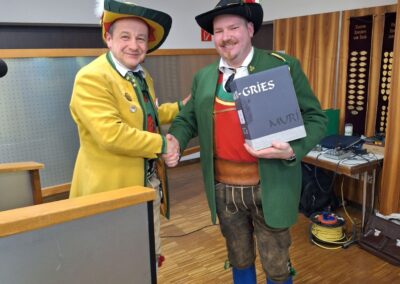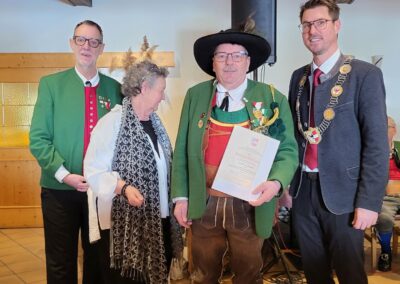 Schießwart Ptf. Joachim Stocker berichtete über die Teilnahme und die Ergebnisse bei den Schießbewerben 2025. Beim Bierkrugschießen krönte sich Ptf. Manfred Tabelander zum Schützenkönig, beim Bataillonsschießen in Wildermieming konnten unsere 23 Teilnehmer 11 Schnüre in Gold, 10 in Silber und 2 in Grün erringen und wurden 3. in der Mannschaftswertung. Jessica Schreier war die Drittplatzierte unter allen Marketenderinnen des Bataillons, ebenfalls Drittplatzierter wurde Lukas Hettegger bei den Jungschützen IV. Besonders viele Teilnehmer schossen auf die letztjährige Fasnachts-Jahresscheibe. Mit einem “Jahrhundertschuss” (Teiler von 0,0) gewann die Wertung schlussendlich auch mit Rainer Santeler ein „Beaser Bua”.