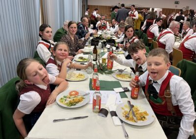 Im Anschluss fand sich die Kompanie wieder im Schützenheim ein, wo unsere „Hauben-Köche“ Markus Kihr und Immanuel Steffan für die ausgezeichnete Mittagsverpflegung sorgten. Lt. Steffan hielt im Anschluss noch die jährliche Schulung über die korrekte Handhabung des Gewehrs ab. Über die Mittagszeit trafen weitere Schützenkameraden und Marketenderinnen ein und auch Bataillonskommandant Major Andraes Haslwanter durfte als weiterer Ehrengast begrüßt werden.